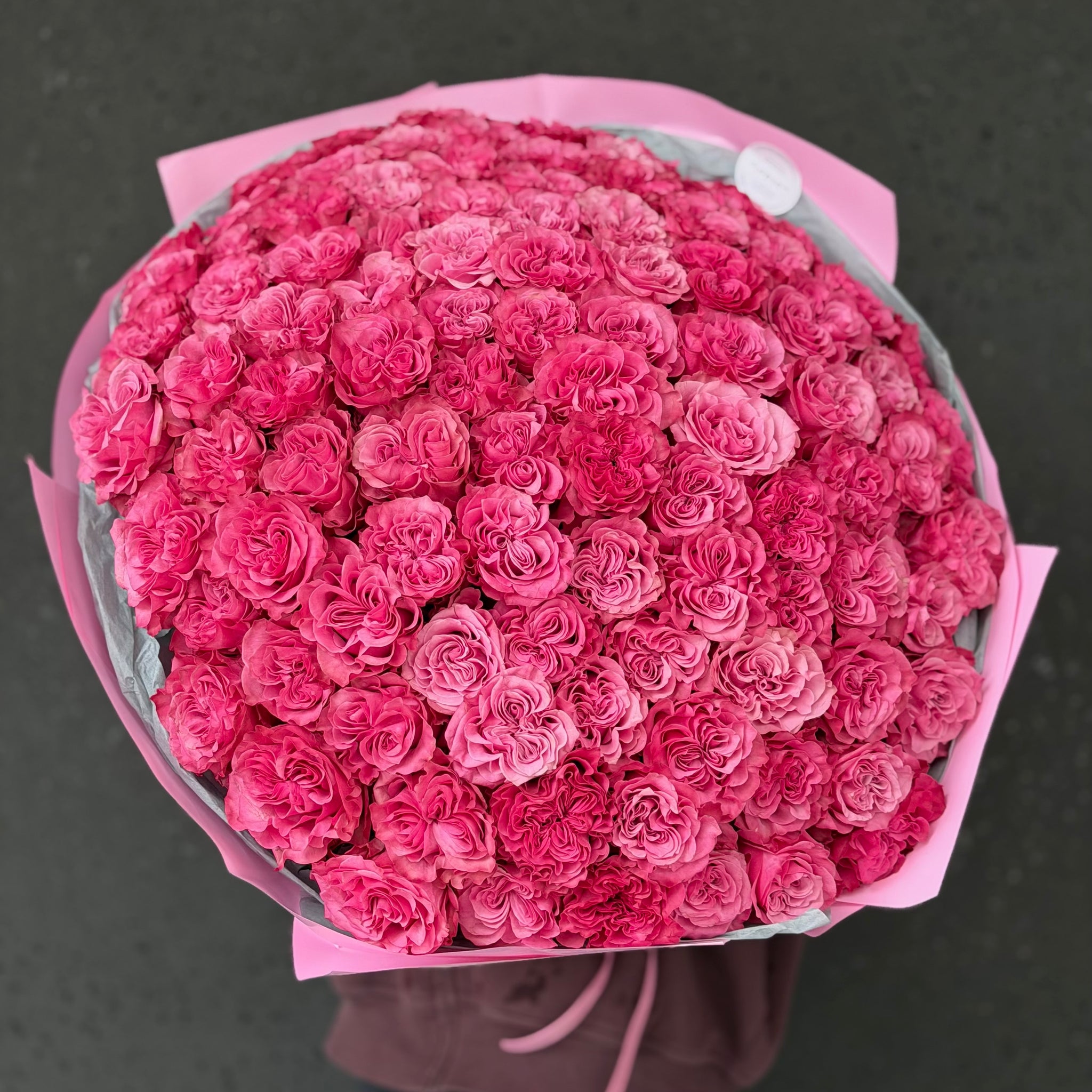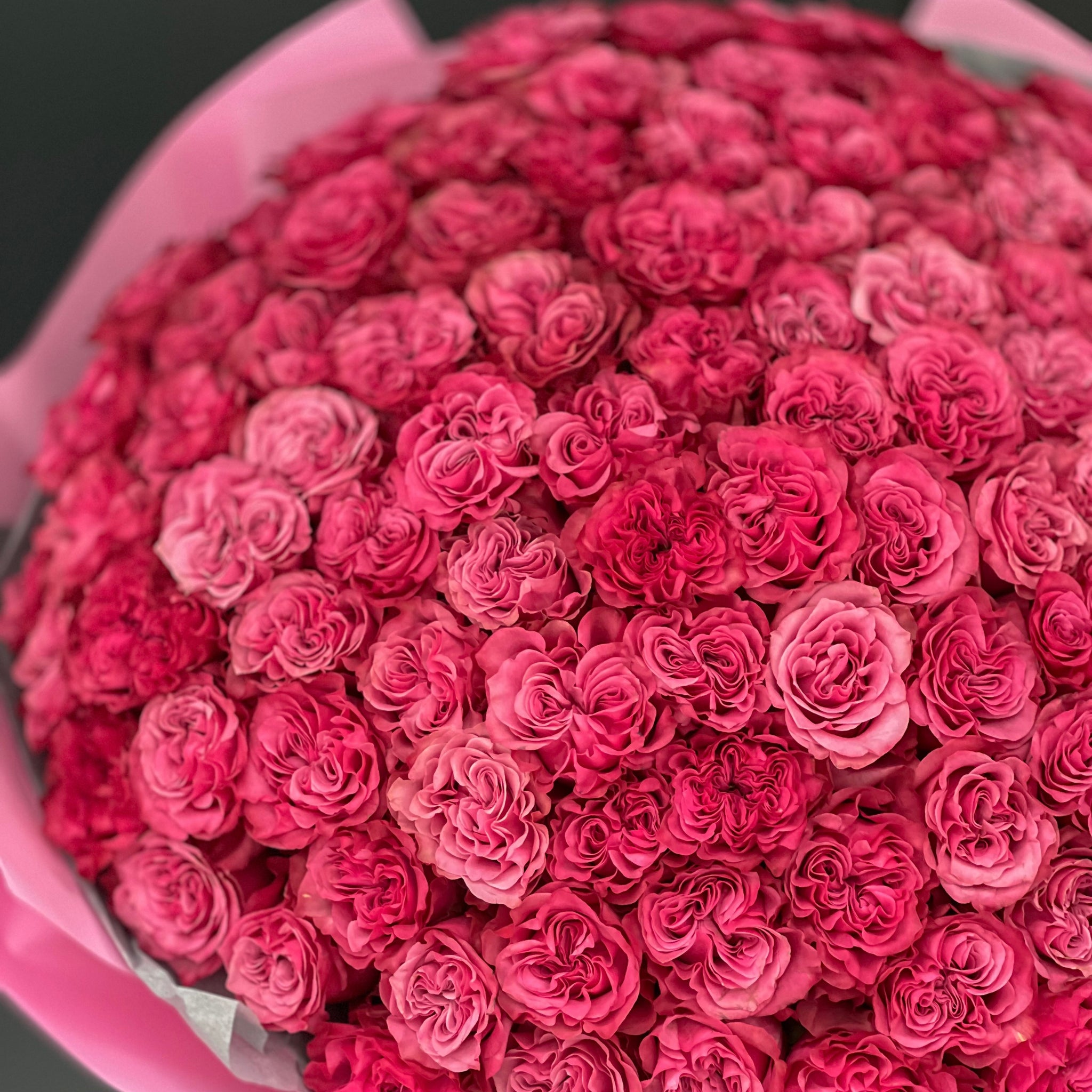 Zdjęcie przedstawia bukiet zawierający 101 i 25 róż.