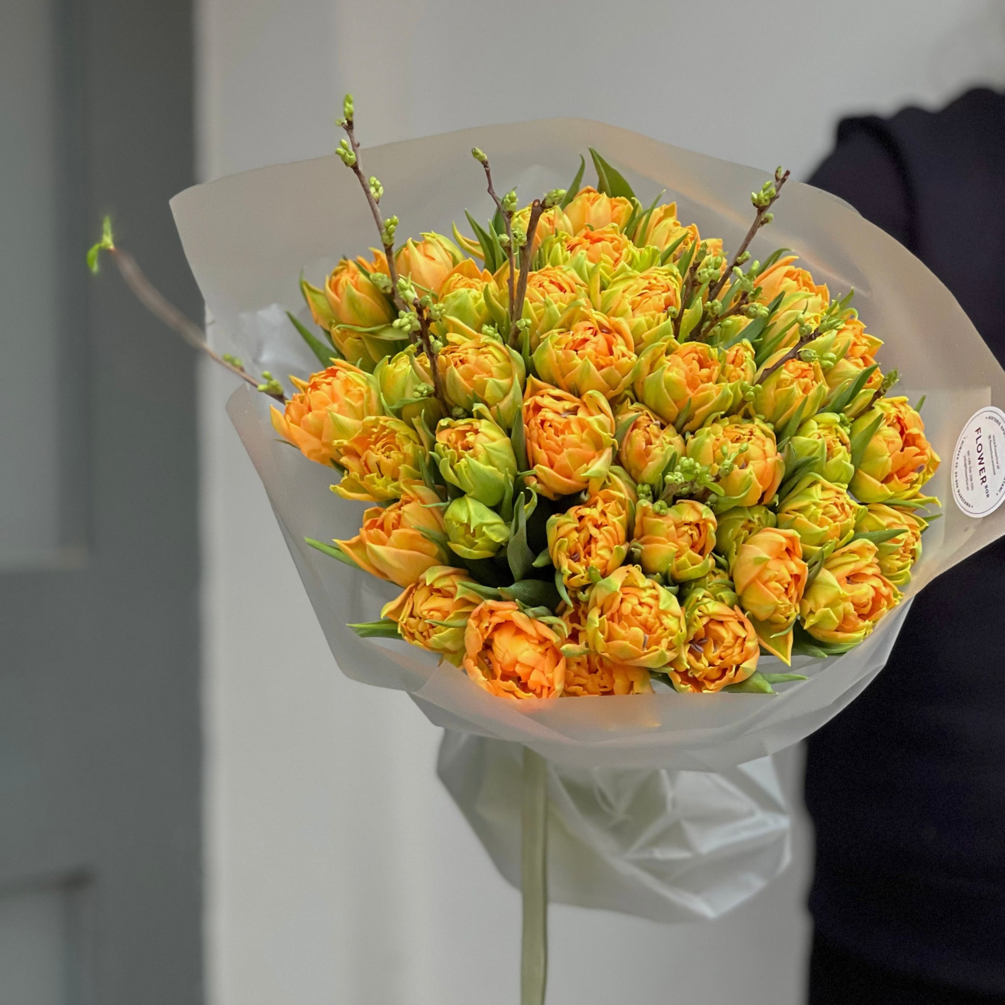 Tulipany pełne z gałązkami